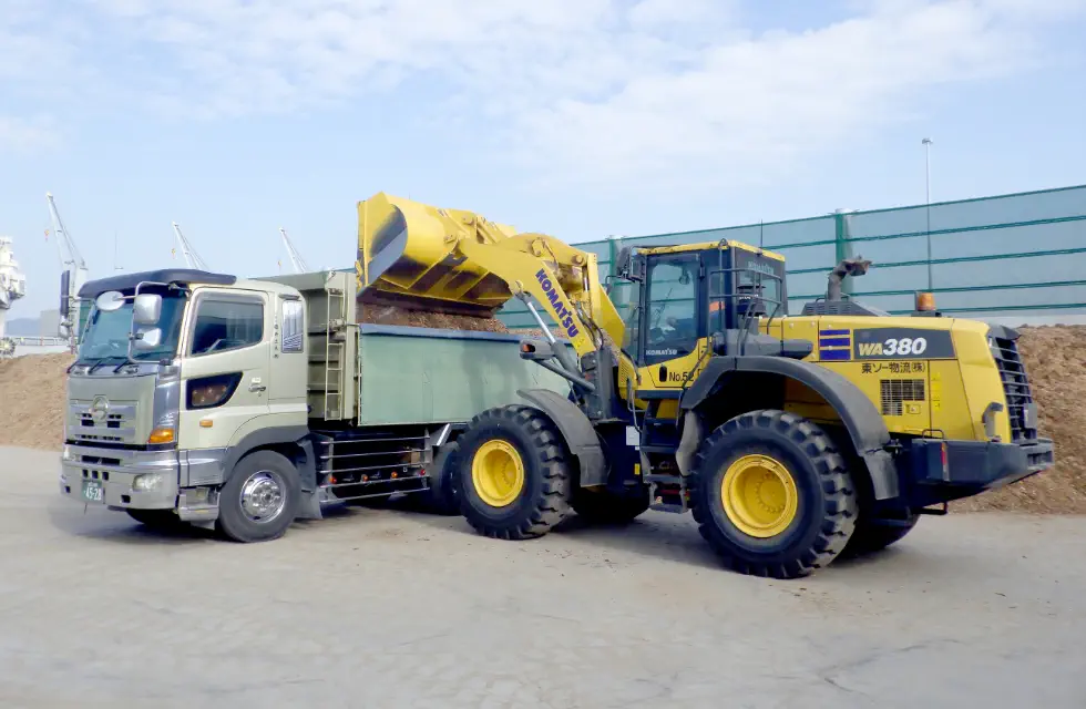 ホイールローダーを使用してのバイオマス燃料供給作業