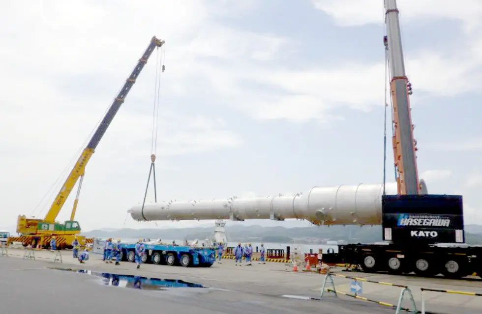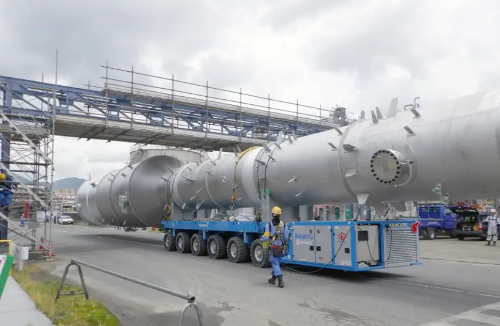 水切りしたプラント機器は、車両(トレーラー等)使用し、東ソー㈱南陽事業所内の各製造プラントへ陸上輸送しています。