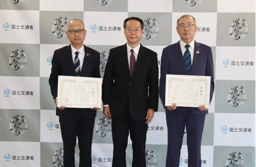 この活動が被災地の復旧・復興に貢献できたとして、当社とコーウン・マリン(株)は国土交通省 海事局長より感謝状を授与されました。