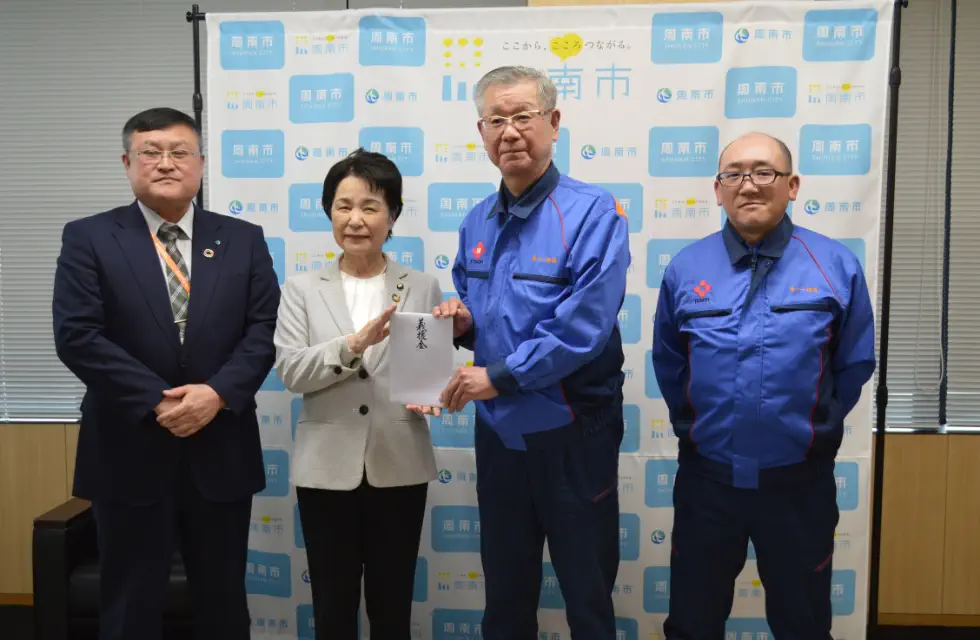 東ソー物流では、社内役員・社員・OB・OG・労働組合が協力し、被災された方々の救援や復興支援として100万円の義援金を拠出。