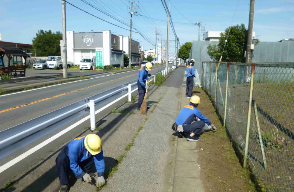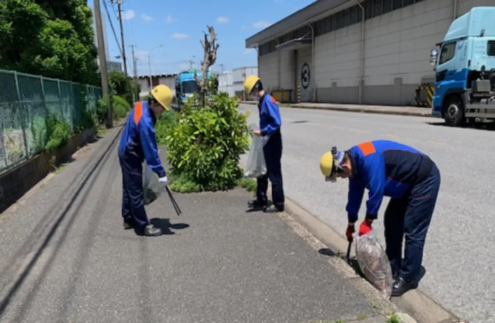 事業所周辺や近隣の公園でのゴミ拾いや除草作業などの清掃活動を実施し、美しい街づくりに貢献しております。