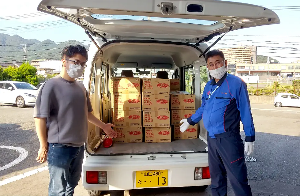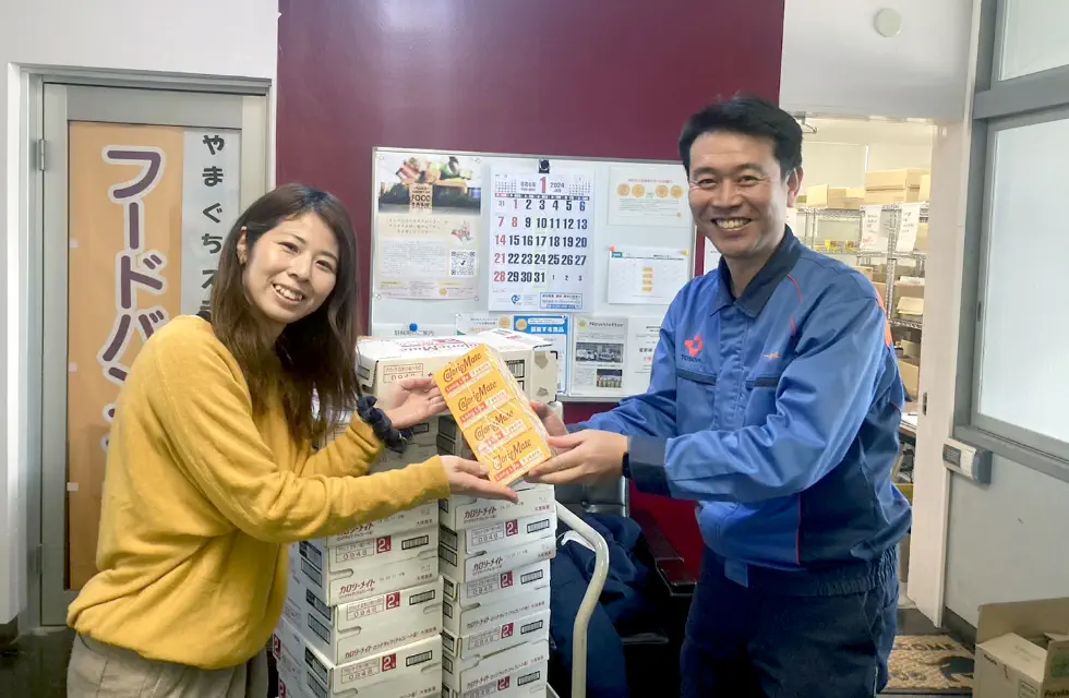 当社で備蓄していた非常食の一部を、フードバンク山口へ寄贈しました。