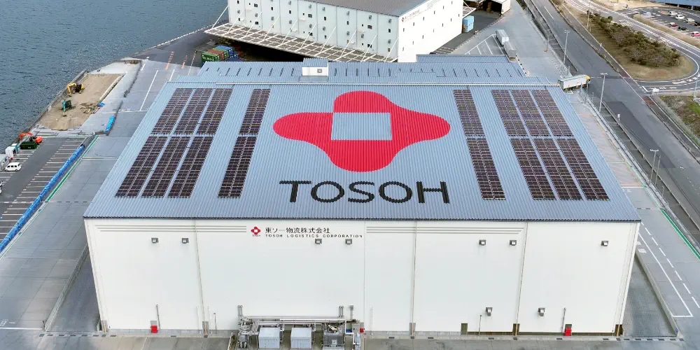 東ソー物流グループでは、「2030年度までに2020年度基準比30%のCO₂排出量削減」を掲げ、再生可能エネルギーの