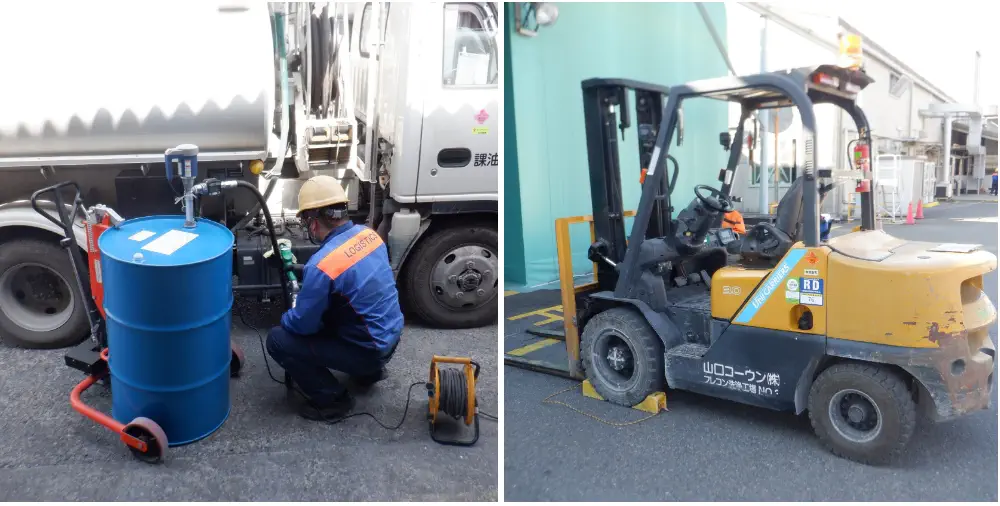 弊社グループでは、多くの貨物車両、船舶、重機等を所有しており、軽油・重油等の化石燃料を使用しています。