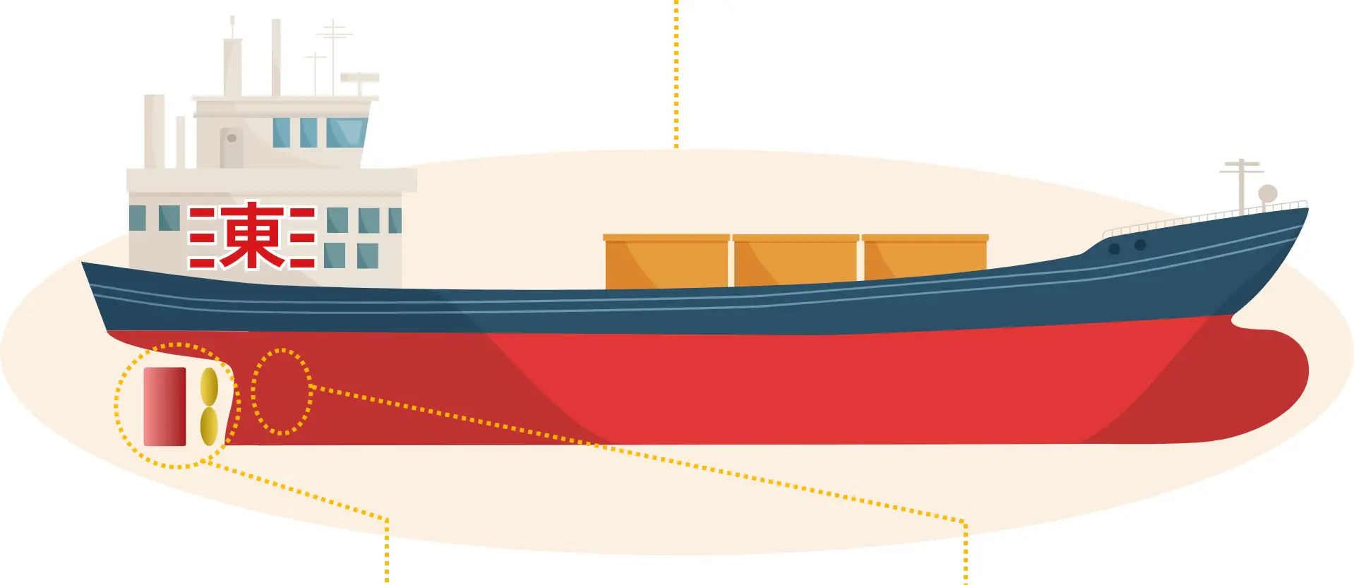 プロペラの推進力を上昇させたり負荷を軽減する事で省エネ効果を発揮する機器を搭載。