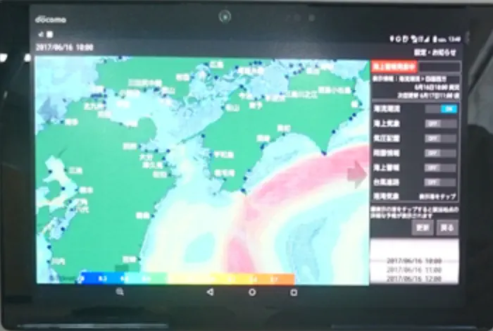 - 潮流海流予測情報を提供するタブレットを搭載し、
