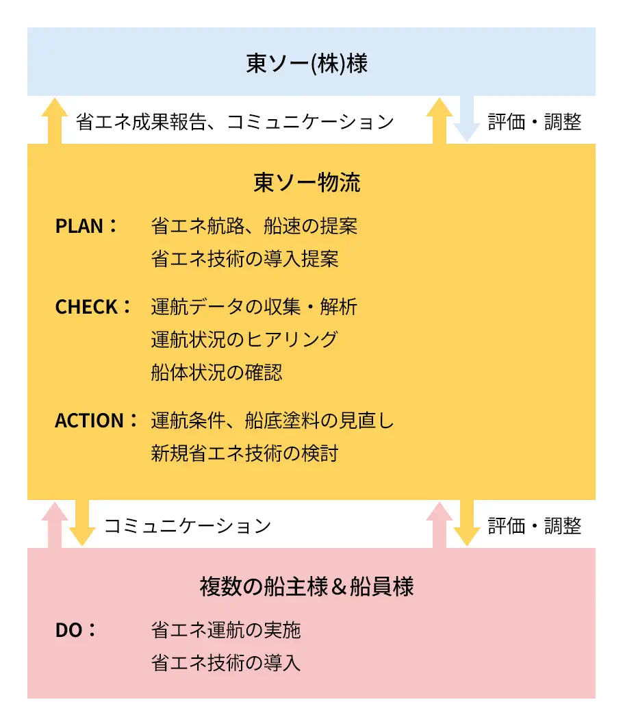 船体改善(ハード)から運航の支援や協力(ソフト)まで、段階的かつ継続的な対策を推進し、