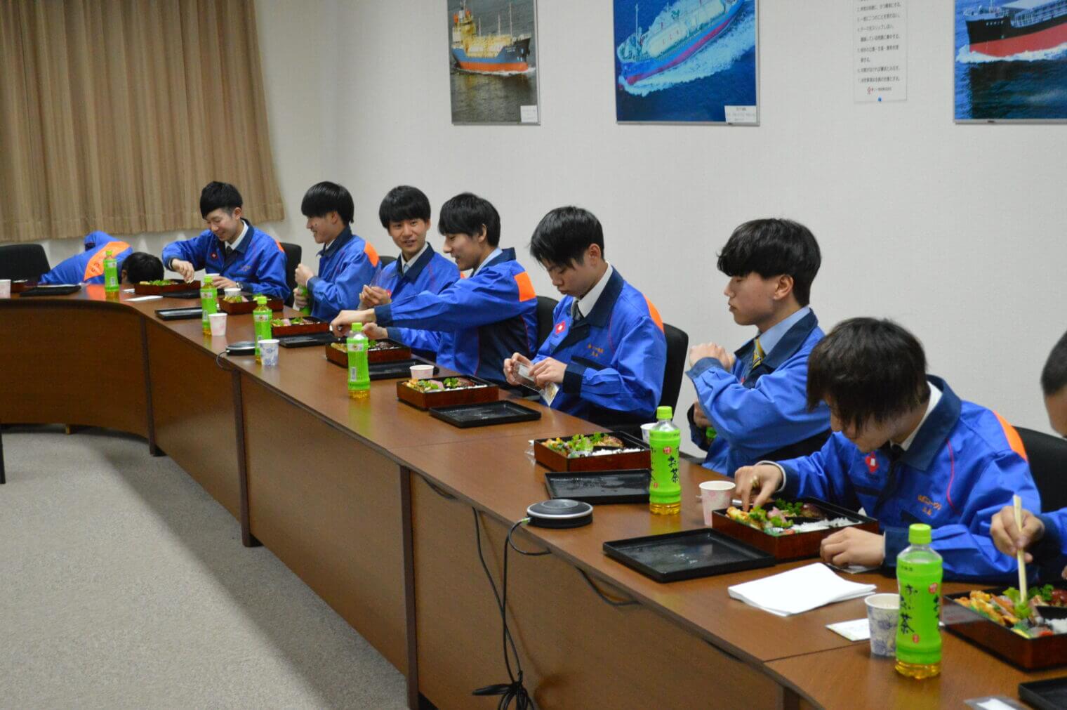 式典では、新成人が20歳を迎えての抱負を述べ、式典後の昼食会では、社長をはじめ人生の大先輩からの言葉を真剣に聞いていました。