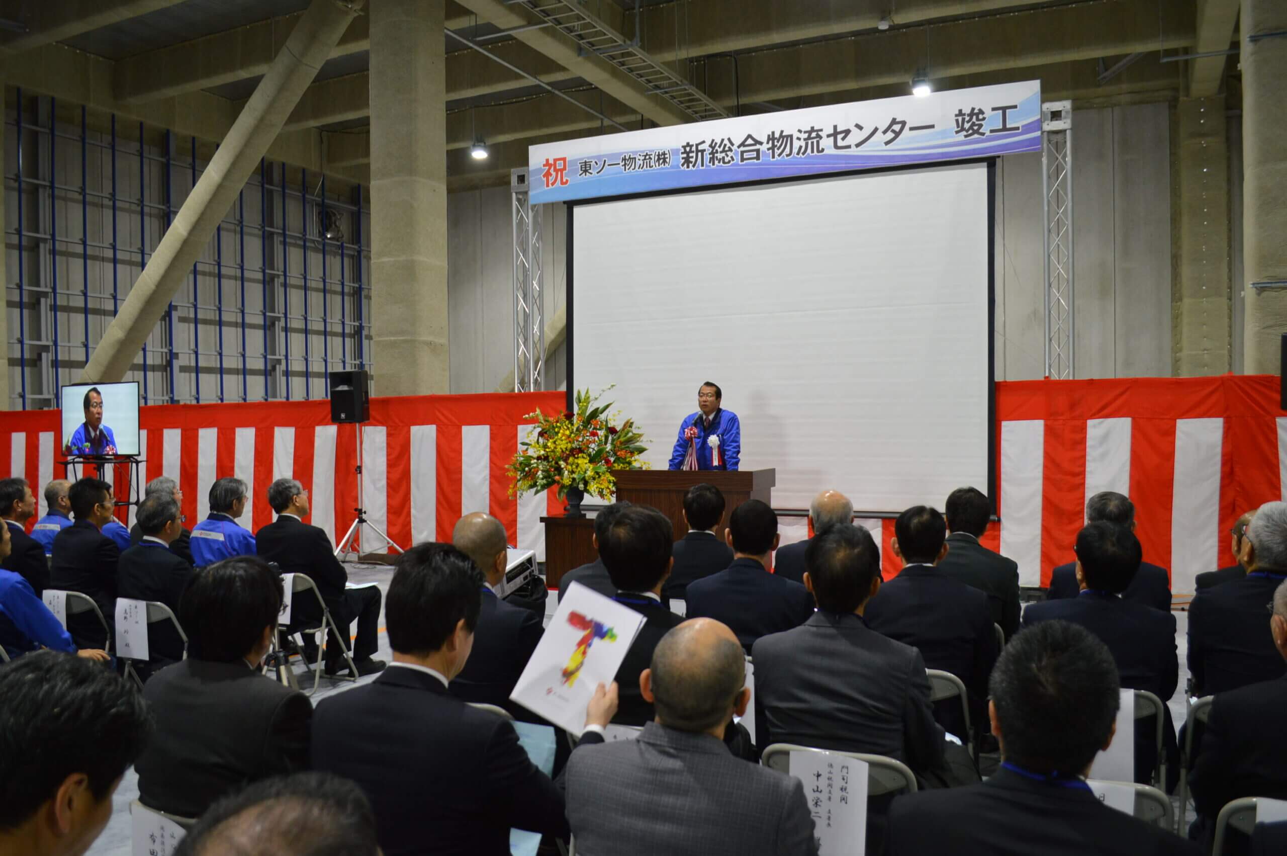 この度、当社の新しい物流拠点となる新総合物流センター「りんかい物流センター A棟」の竣工式を執り行いました。式典には、山口県村岡知事、周南市佐田副市長、東ソー㈱山本社長をはじめ関係者210名以上が出席しました。