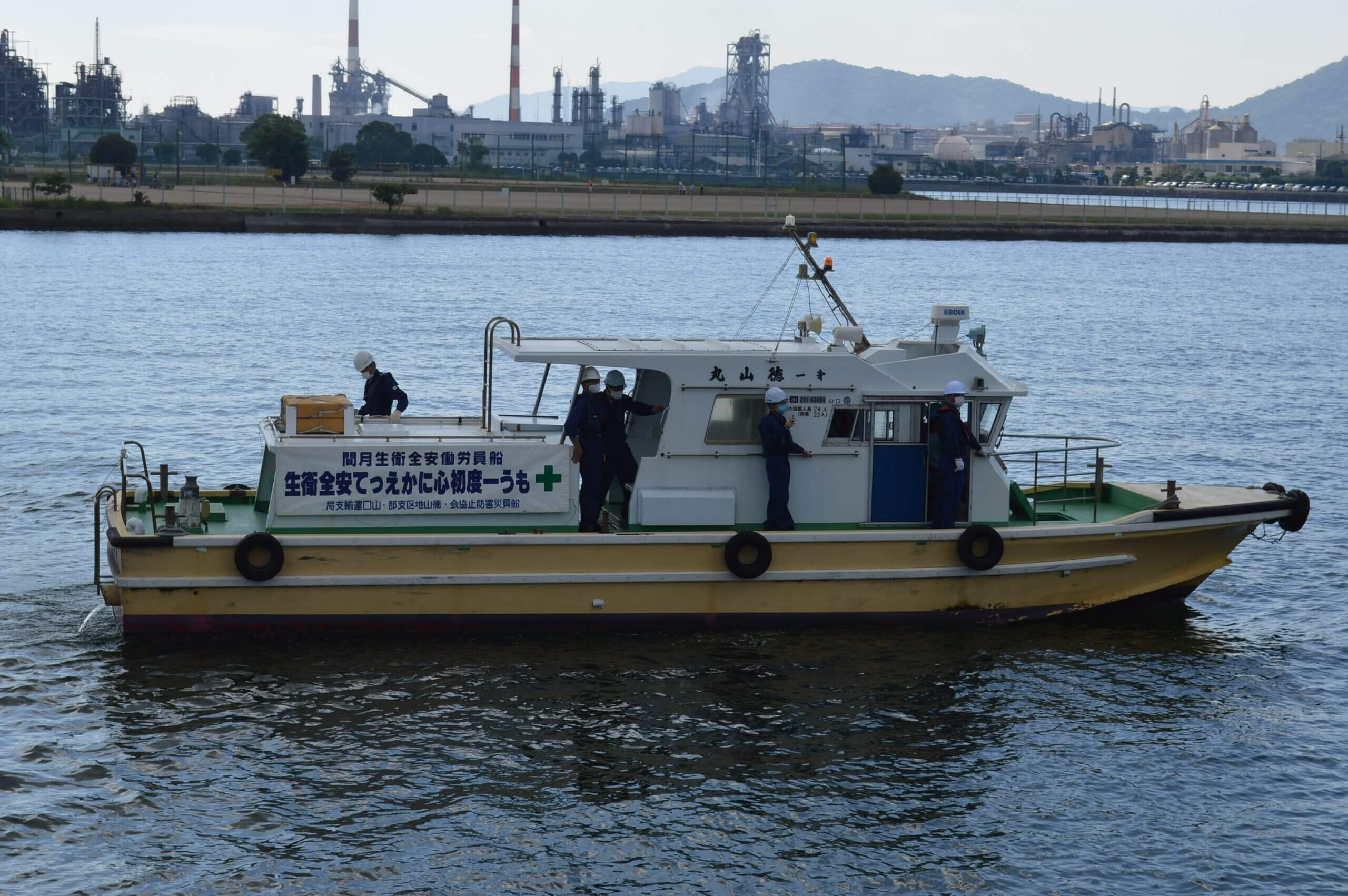 その後、船員災害防止協会 徳山地区支部長の重枝支部長等関係者が交通艇に乗船し、徳山下松港内の船舶に対し、船員災害防止を呼び掛けました。