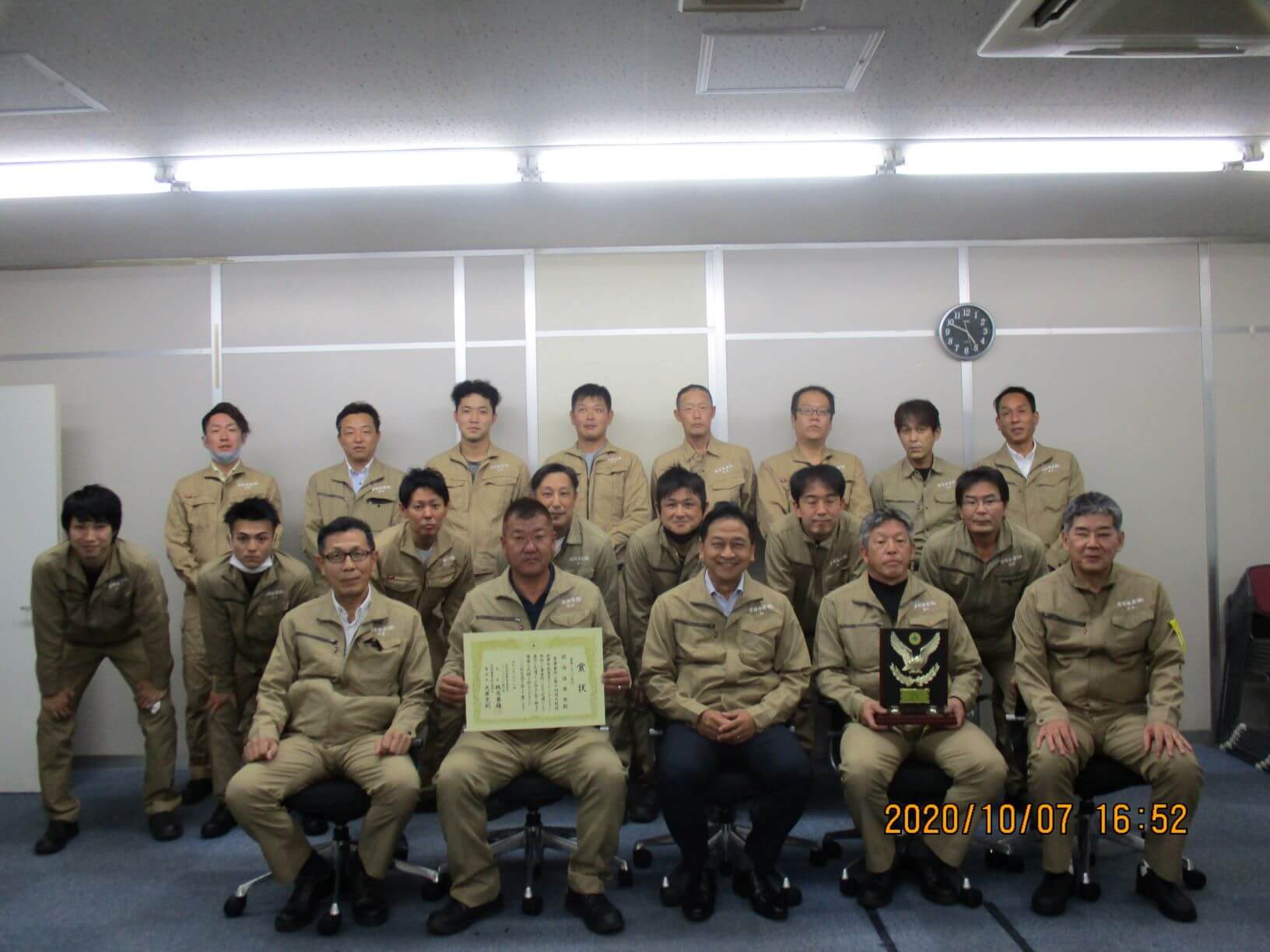 コンテスト期間中の交通事故や交通違反の件数を点数で換算して優良事業所を決めるものですが、関西海運社がエントリーした事業用トラック部門のCグループでは、345事業所のエントリーがあり、その中で同社を含め7事業所が金賞を受賞しました。