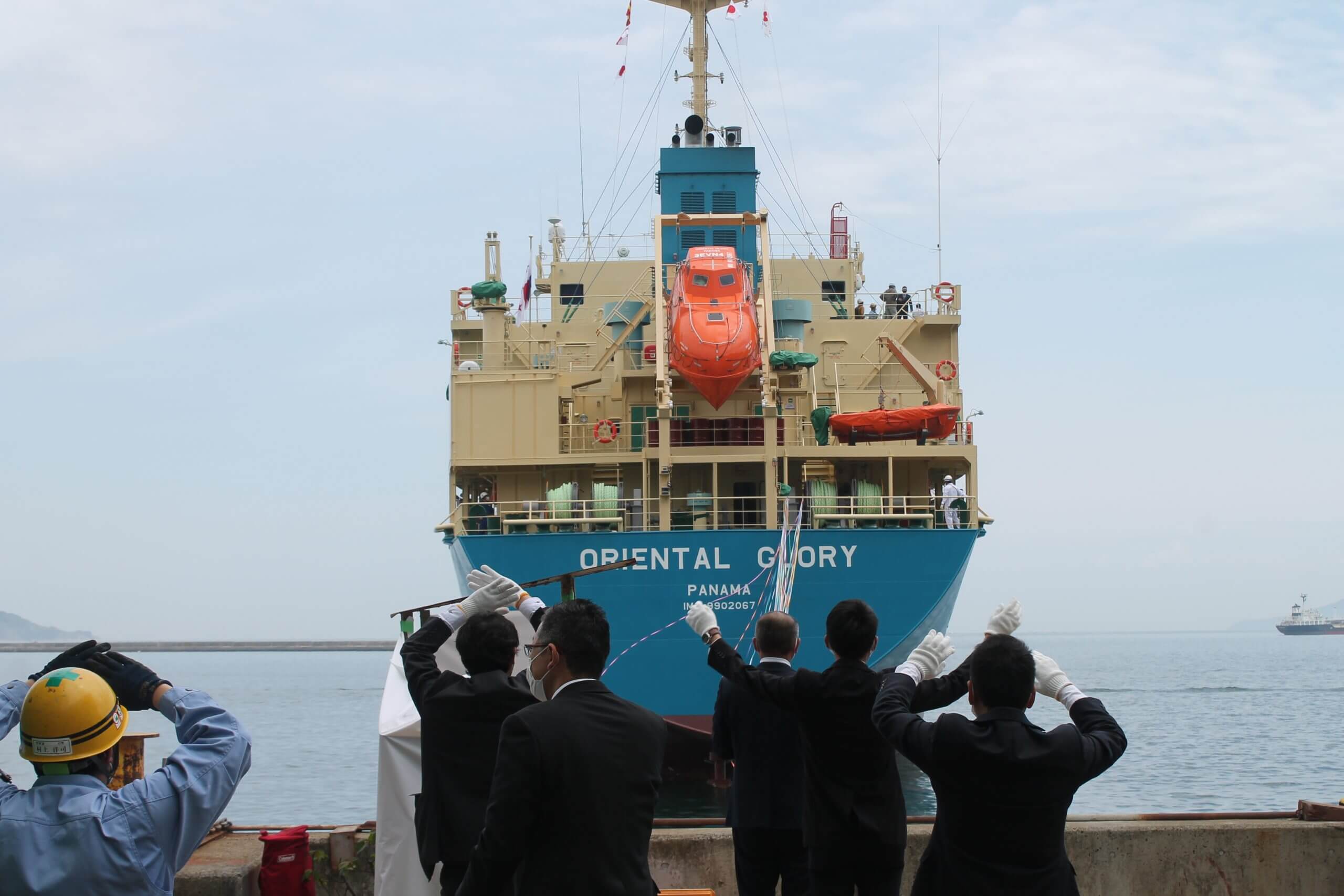 2021年4月16日(金)、村上秀造船株式会社(愛媛県今治)において、新造VCM船"オリエンタル グローリー"の就航に合わせ安全祈願祭が執り行われました。
