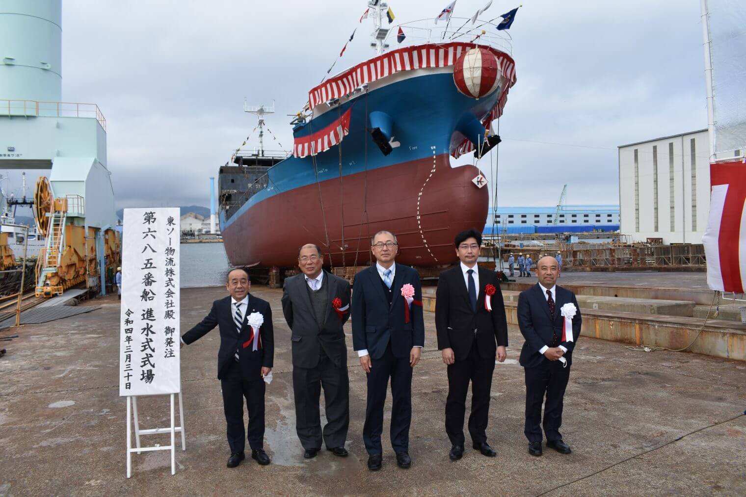 液体苛性ソーダ運搬船「東進丸代替船」進水式