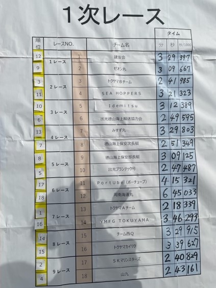 そんな中我々「SEA HOPPERS」は3分21秒323で走破、このタイムは3年前の記録を2秒近く縮める中々の好タイムでした。しかしながら、またしても予選突破の壁は厚く18チーム中11位で惜しくも予選敗退…。予選最終レースまで縺れたドキドキな内容でした。