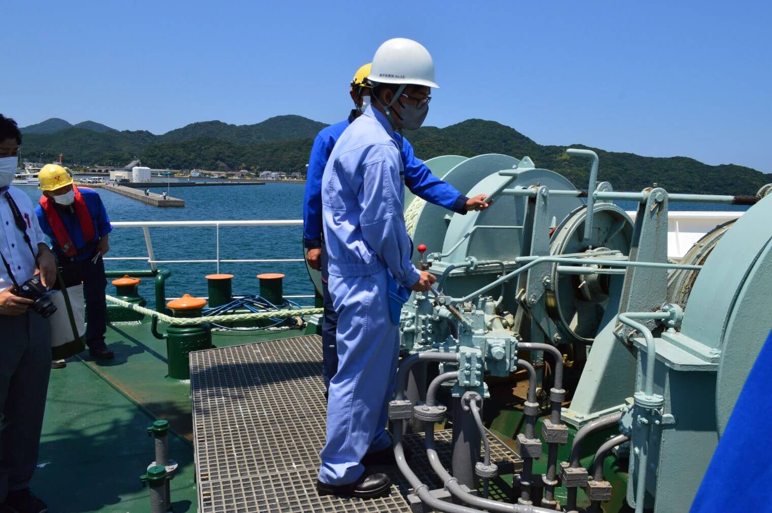 7月20日(木)、21日(金)に仙崎港にて、山口県立大津緑洋高等学校の生徒を対象に「東駿丸」の船内見学会を開催いたしました。この見学会は内航船の労働環境や船内生活を体感し、船員の疑似体験をすることで内航船員への興味を持ってもらうことや、就職先として選択肢に加えてもらうことを目的として企画し、東ソー㈱や仙崎海上保安部、萩農林水産事務所など関係各所の協力を得て実現しました。