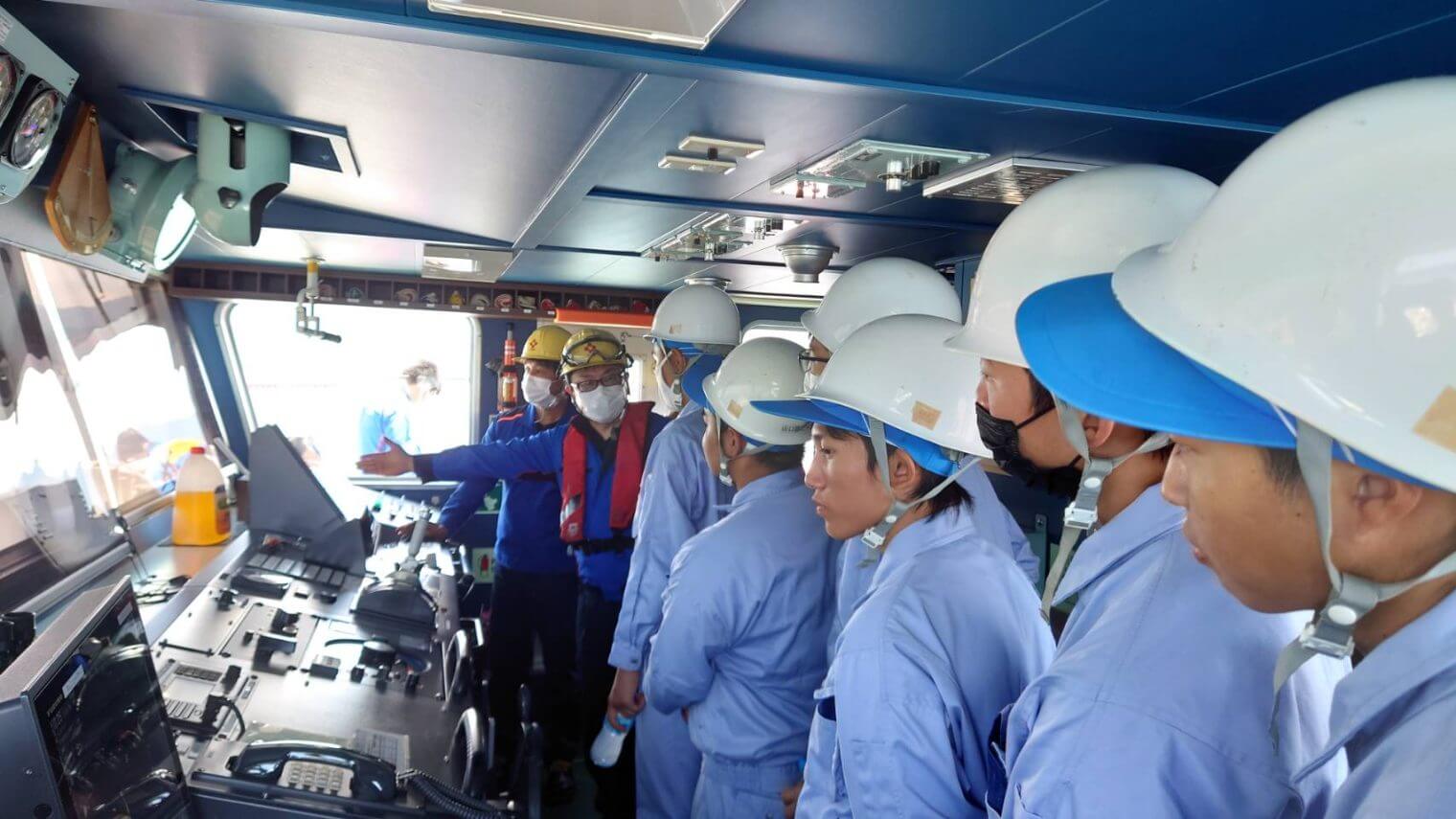 生徒からは「実際の船を見たことで船乗りになる実感が湧いた。」「実際に働いている船員さんとのコミュニケーションを通じて、船への憧れが高まった。」と感想が聞かれ、有意義な見学会となりました。