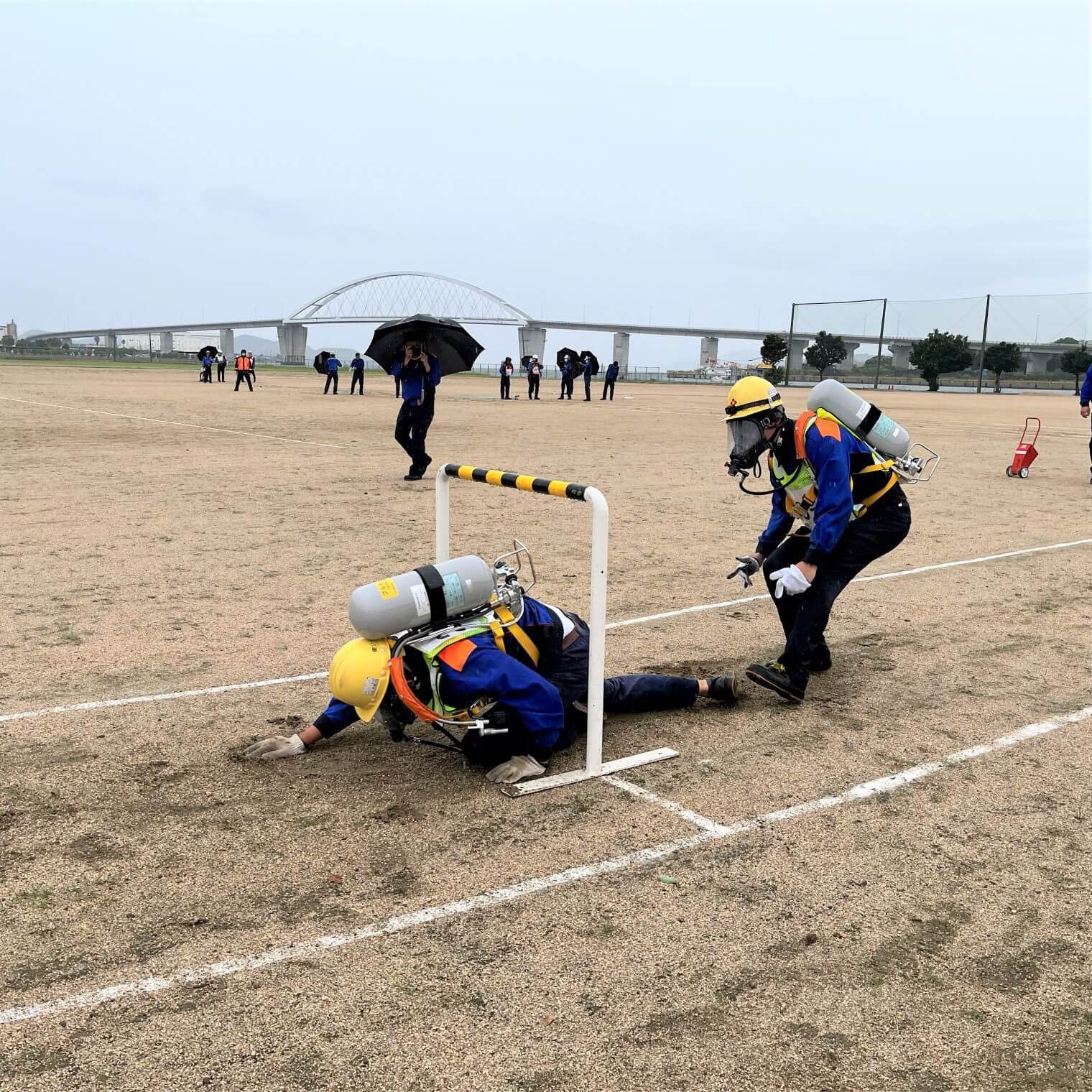 2023年9月22日(金)、東ソー総合グラウンドにて第37回東ソー㈱南陽事業所 防災競技大会が開催され、一昨年、昨年に引き続き、港湾・倉庫部 山本・内田・廣實のメンバーで出場しました。