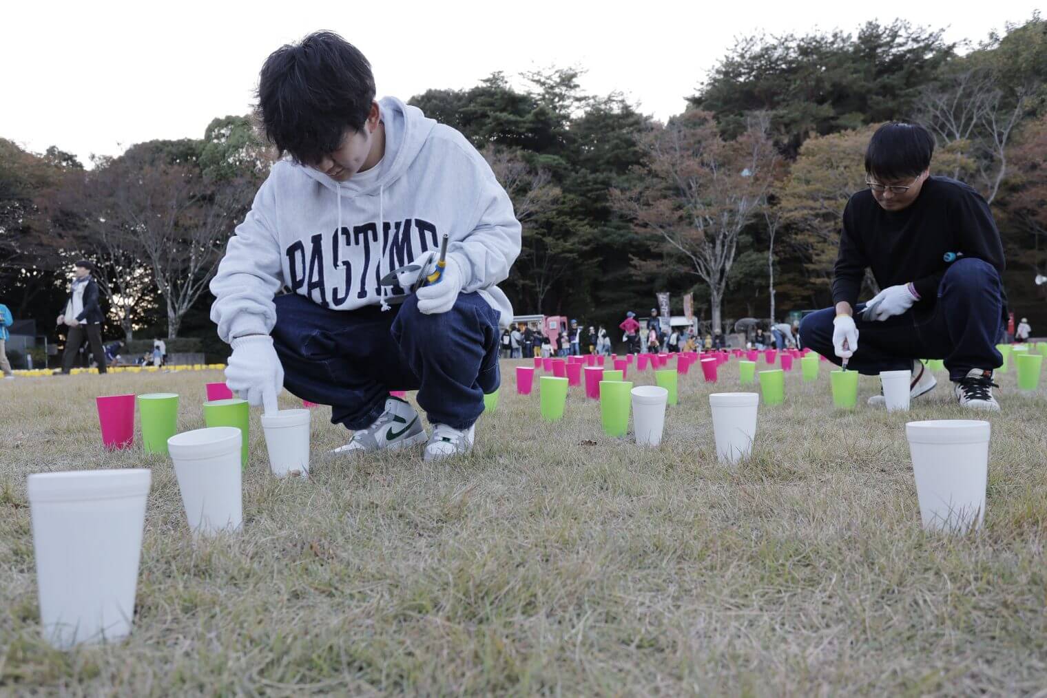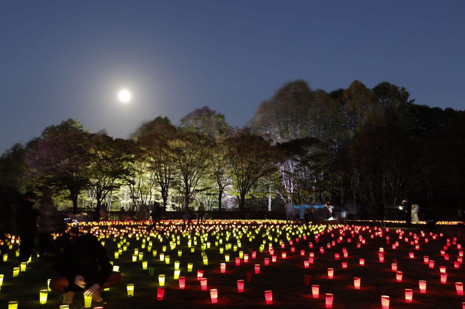 また、園内が樹木のライトアップやLED風船、竹でできた灯籠やおえかき灯ろうなど、様々な灯ろうで彩られました。