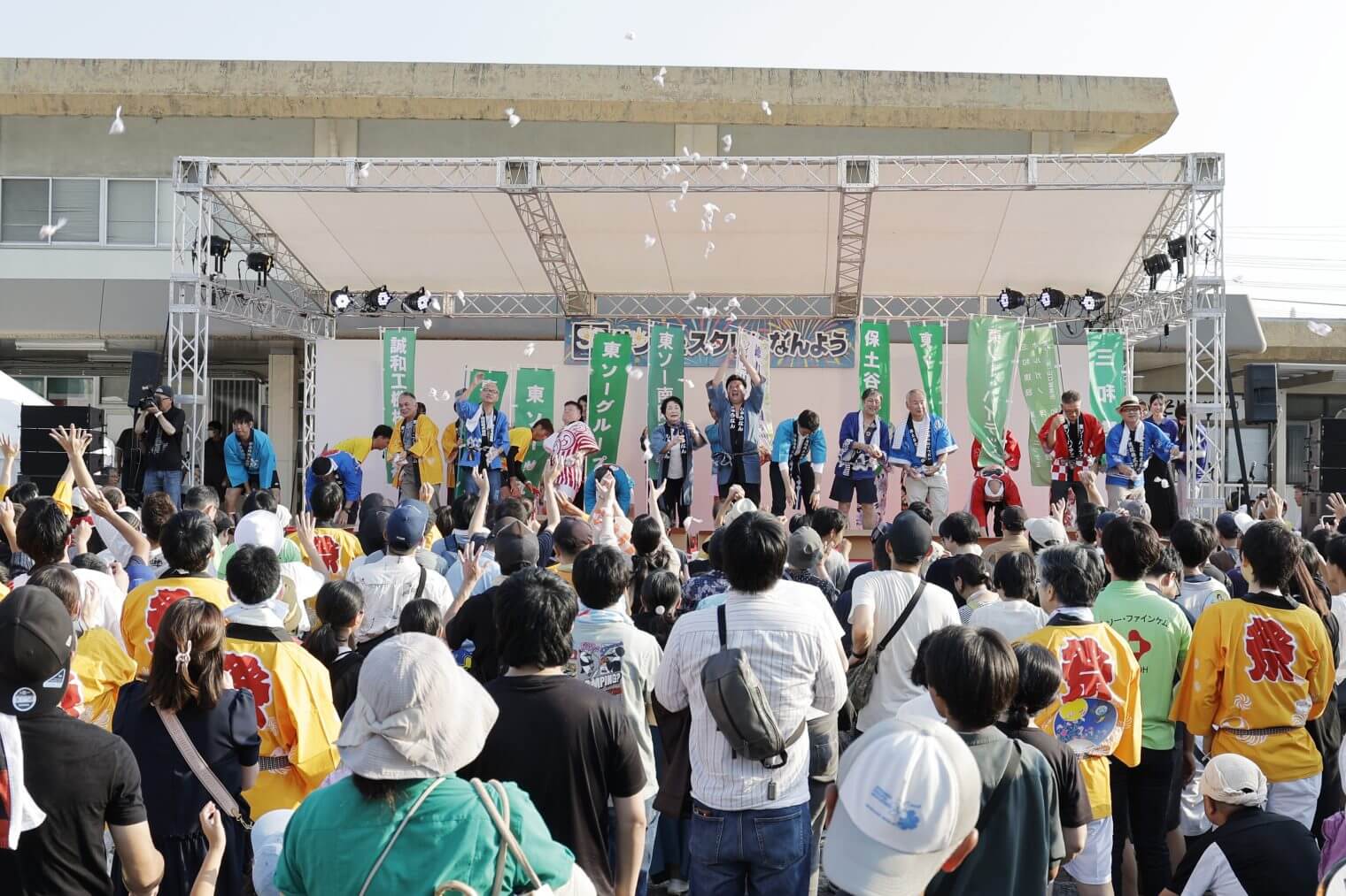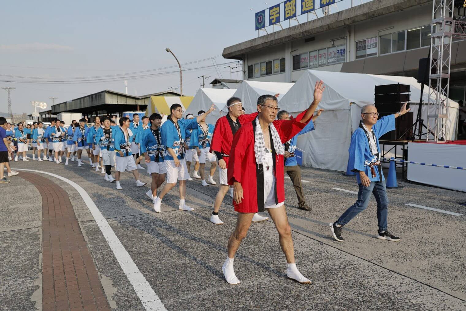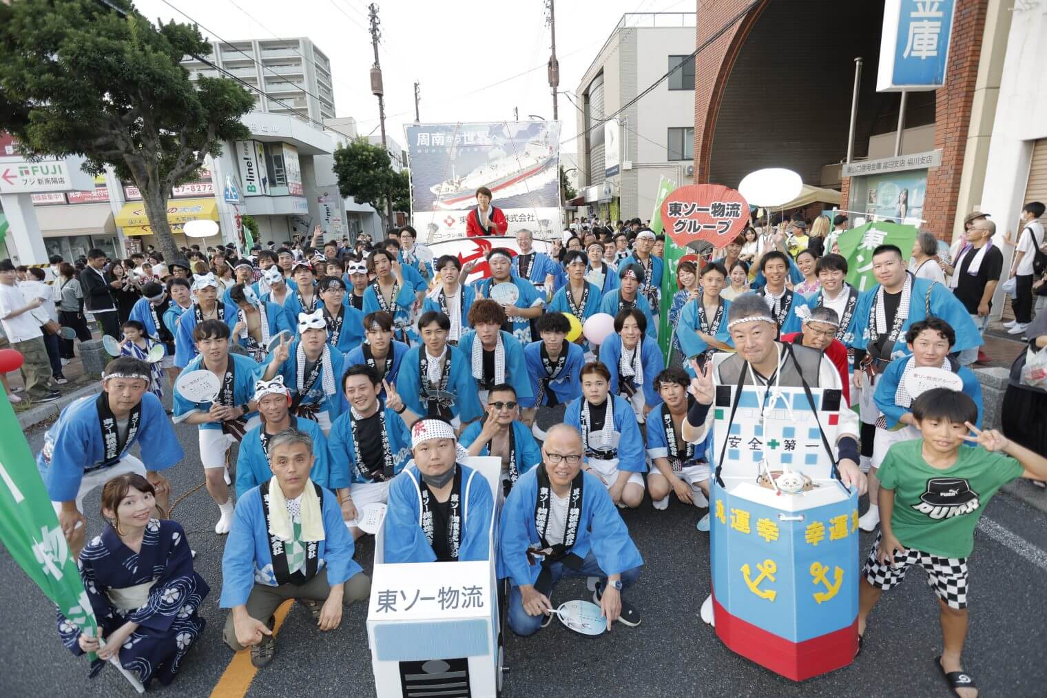 当社グループ(当社、山口コーウン、コーウン産業、コーウン・マリン)は総勢110名で「新南陽かぞえ唄」・「企業みこし」・「露店出店」に参加しました。企業みこしでは玉木頭領自ら乗り子となり、ステージ前でのアクションを盛り上げました。