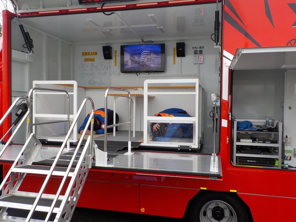 11月19日(火)~22日(金)、四日市市消防本部(防災教育センター)の協力による起震車での地震体験学習が実施されました。この体験学習は南海トラフ周辺におけるマグニチュード8.0~9.0クラスの地震発生確率が「10年以内:30%」「30年以内:70~80%」と予想されていることを踏まえ、地震の揺れを疑似体験し、防災意識の向上を図ることを目的として行われました。