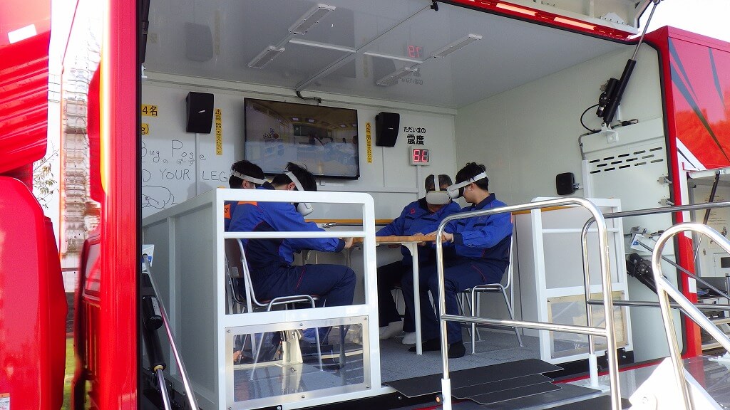 四日市支社の全従業員117名が参加し、三重県に新たに導入されたVR技術を活用して災害を疑似体験できる車両で、希望者が立体映像とともに地震の強い揺れを疑似体験しました。体験した人からは「震度7クラスの地震になると、想像していた以上の揺れで驚いた」という声が聞かれました。