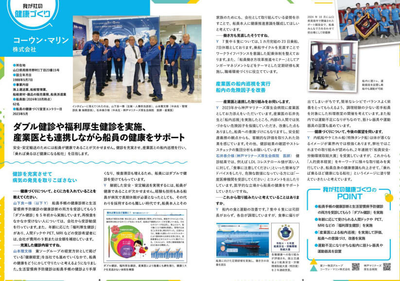 これは、国土交通省有識者メンバーでもある神奈川大学の久宗教授が当社のトリプルS受賞をはじめとした健康意識向上の取組みに興味を持ち、船員保険部へ推薦されたことで掲載に到りました。