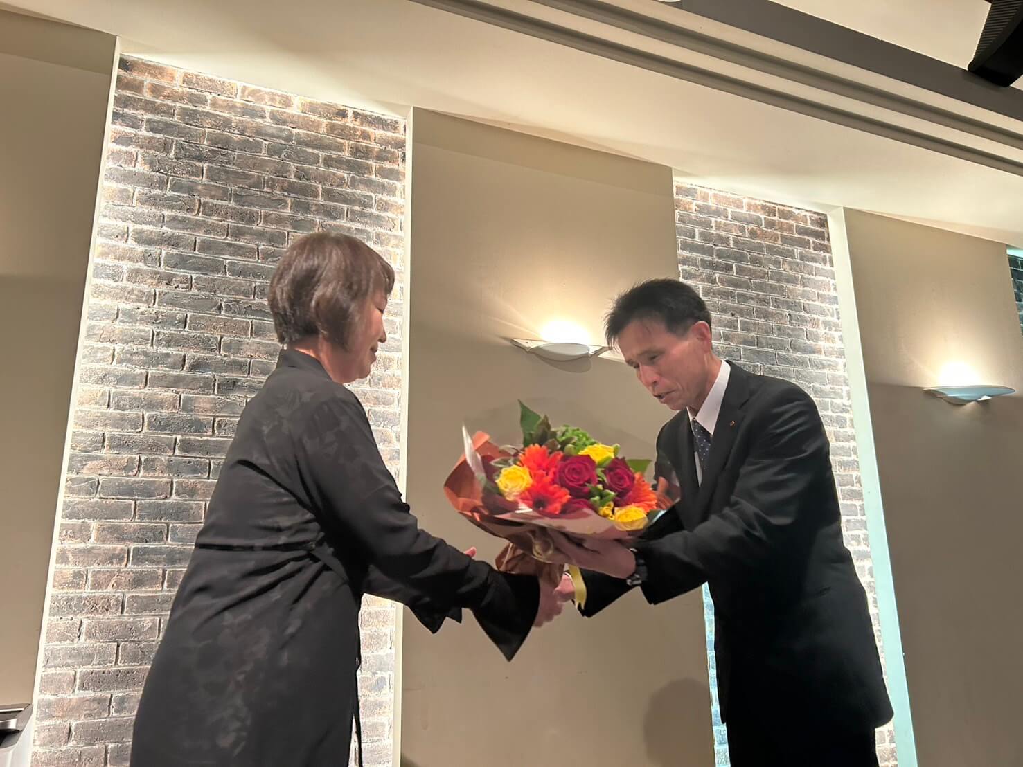 3月3日本社地区、東京地区において「定年退職者慰労会」を開催致しました。本社地区では定年を迎えられた7名のうち4名の方々にご参加頂き、稲毛社長より長年にわたる功績を称え、感謝の言葉が述べられました。また定年を迎えられた方々からは昔を振り返り、「大変なこともありましたが今となっては大変良い思い出となりました、今後は健康面に留意し仕事に励みます」等、時折笑い話も交えたスピーチがありました。終盤にはご同席頂いた奥様に花束と共に長年の感謝の言葉が贈られる一幕もあり、とても和やかな会となりました。また、東京地区においても定年退職を迎えられた1名の社員へ記念品授与ならびに昼食会が開催されました。