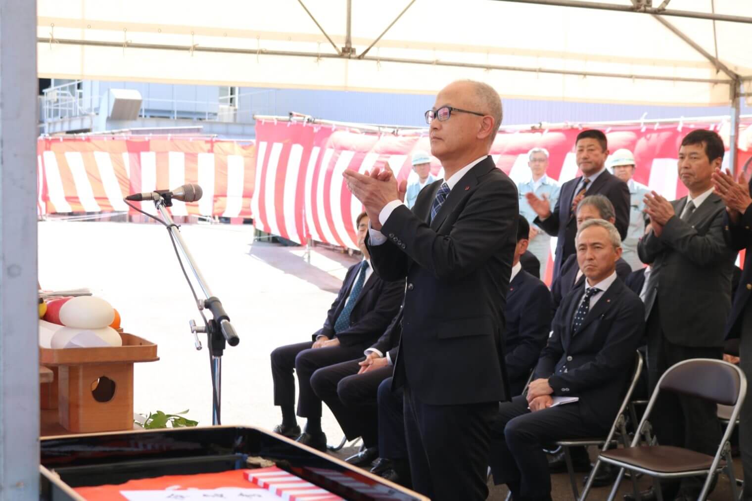 竣工式典は、興亜産業㈱(本社:香川県丸亀市)で執り行い、稲毛社長により本船は「東華丸」と命名されました。