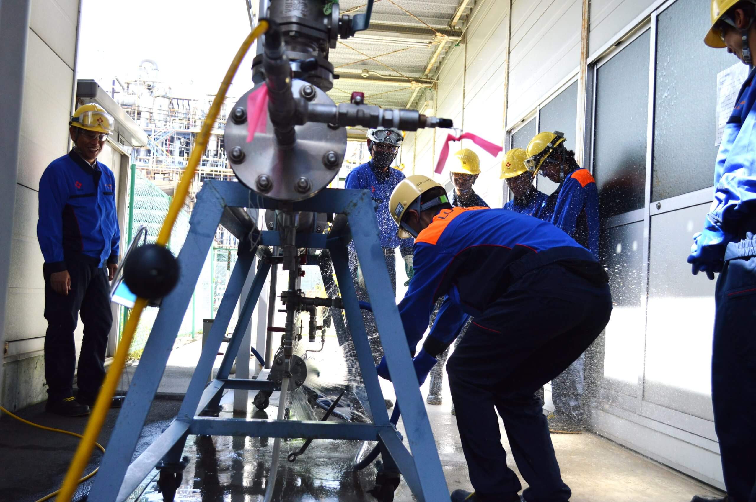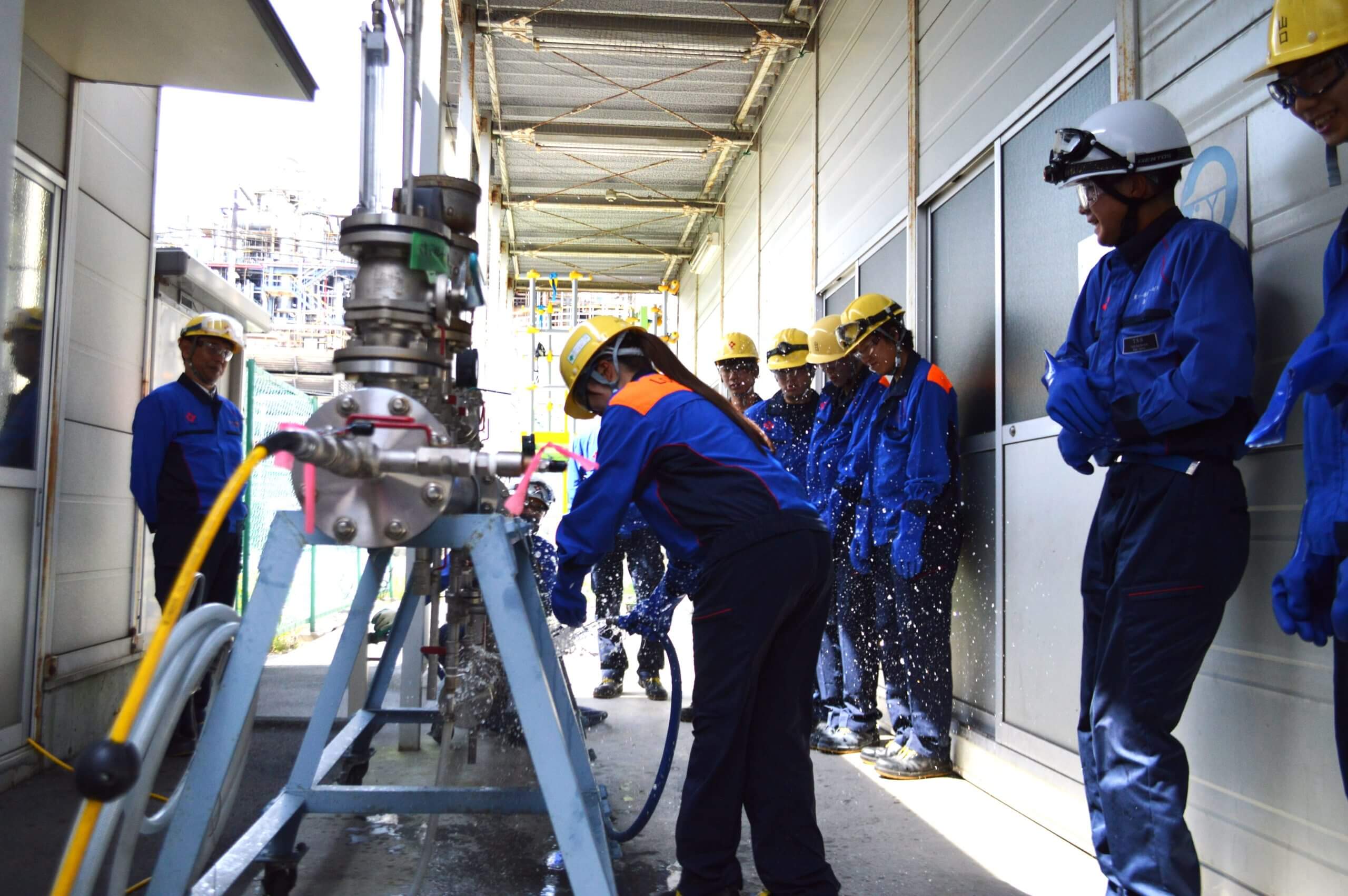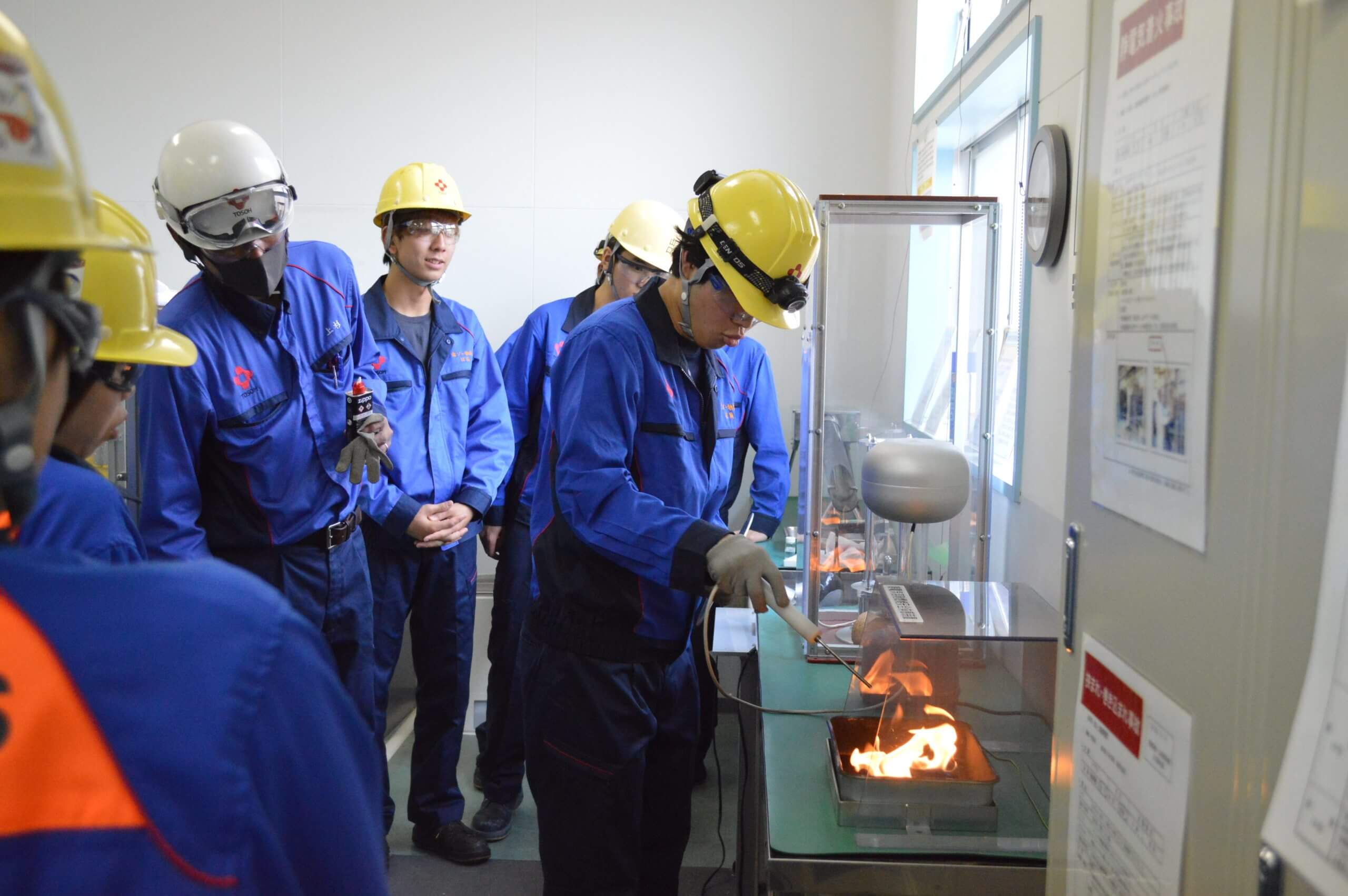 2025年6月17日(火)・18日(水)の2日間、東ソー教育研修センターで「新入社員技術教育」を実施しました。この研修では、現場で働く新入社員が、座学に加えて「挟まれ」「巻き込まれ」「薬液被液」「静電気爆発」「粉塵爆発」などの疑似体験や実験を通じて、労働災害の危険性とその恐ろしさを体感的に学びました。実習中には、思わず声を上げたり身をすくめる様子も見られ、参加者の安全意識が一層高まったことがうかがえました。 この経験を糧に、全員が安全・安心な職場づくりの担い手として成長してくれることを期待しています。