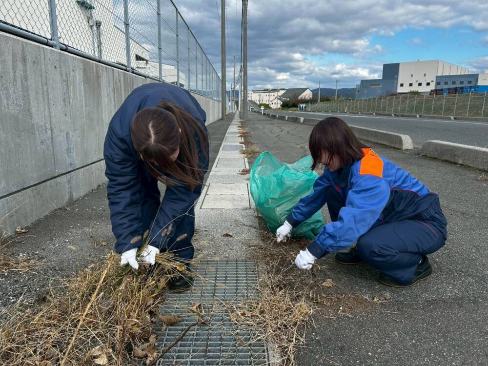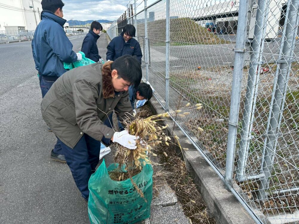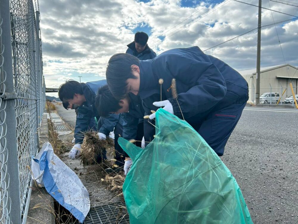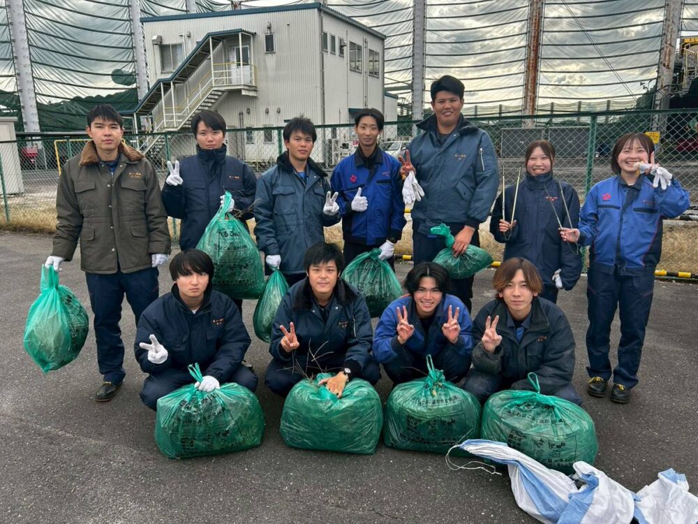 2025年11月19日(水)に「日本列島クリーン大作戦~クリーンアップしんなんよう~」が新南陽商工会議所により開催され、周辺企業17社102名が参加し、当社でも今年度入社の新入社員を中心に12名が新南陽埠頭地区にて清掃活動(ごみ拾い・除草)を実施しました。地域貢献に加え、久々に顔を合わせる同期と交流が出来る良い機会となりました。当日は、参加者全員で集めたゴミの総重量はなんと331kgに達し、地域の美化に少しでも貢献が出来たことを嬉しく感じております。今後も当社は「きれいなまちづくり」に積極的に取組ん でいきます。