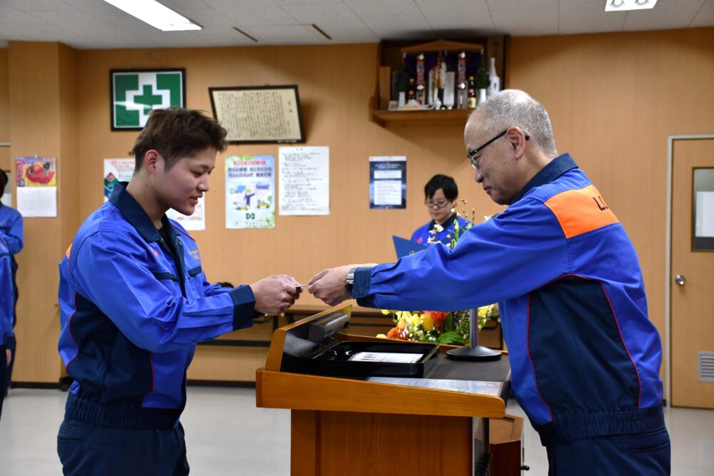 式典は滞りなく進行し、稲毛社長からはお祝いの言葉とともに、当社の企業理念の”6つの信念(挑戦を続ける意思・冷静な判断・プロの自覚・多様性の尊重・感謝と協力・健康で笑顔)”が贈られました。これは、当社で働く従業員の想いや考え方をもとに形づくられたものであり、「これからの人生で迷ったときの判断材料として心に留めてほしい」とのメッセージが添えられました。また、20歳代表の木村晴和さんは、「これまで支えてくださった方々への感謝を忘れず、尊敬する先輩方に近づけるよう努力したい。そして、自分自身と会社の可能性を広げていきたい」と、力強い決意を語ってくれました。