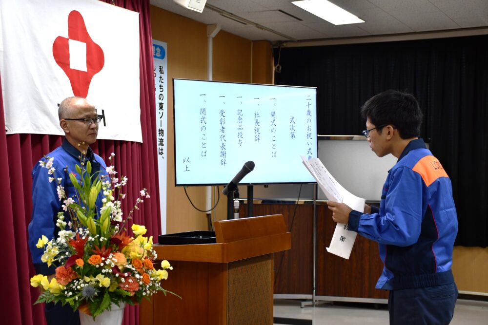2026年1月13日(火)、「20歳のお祝い式典」が開催され、9名(本社地区:7名、四日市地区:2名)が出席しました。